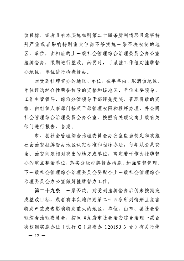 龍巖市健全落實(shí)社會(huì)治安綜合治理領(lǐng)導(dǎo)責(zé)任制實(shí)施細(xì)則(巖委辦發(fā)【2017】11號(hào))