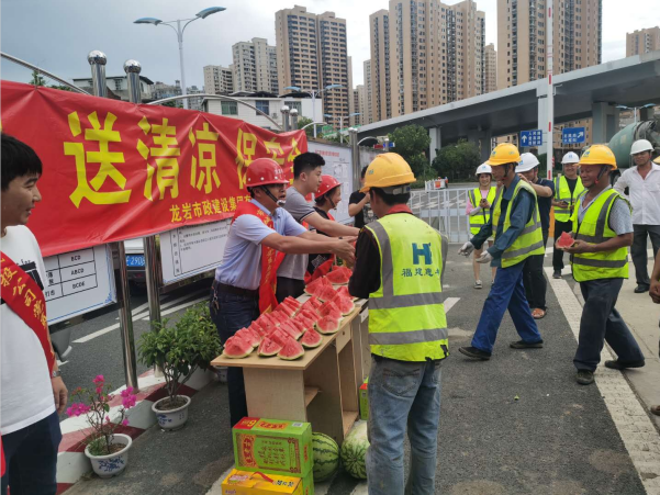 “弟兄們,來吃西瓜、喝涼茶”7月3日大中午,龍巖市政集團組織的黨員、志愿者們?yōu)槲玳g在項目現(xiàn)場暫時休息的一線工人們獻上一塊塊甘甜可口西瓜。這是該公司針對近來天氣悶熱特意為一線職工開展的“走項目、送清涼、保安全”活動。班子成員兵分幾路分別帶隊前往龍巖大橋、浮東路、羅橋節(jié)點和龍巖大道二期等重點項目,為現(xiàn)場一線的工人們發(fā)放了西瓜、王老吉和菊花茶等防暑降溫食品,對廣大在一線的員工克服天氣影響,堅守崗位認真工作表示感謝!
